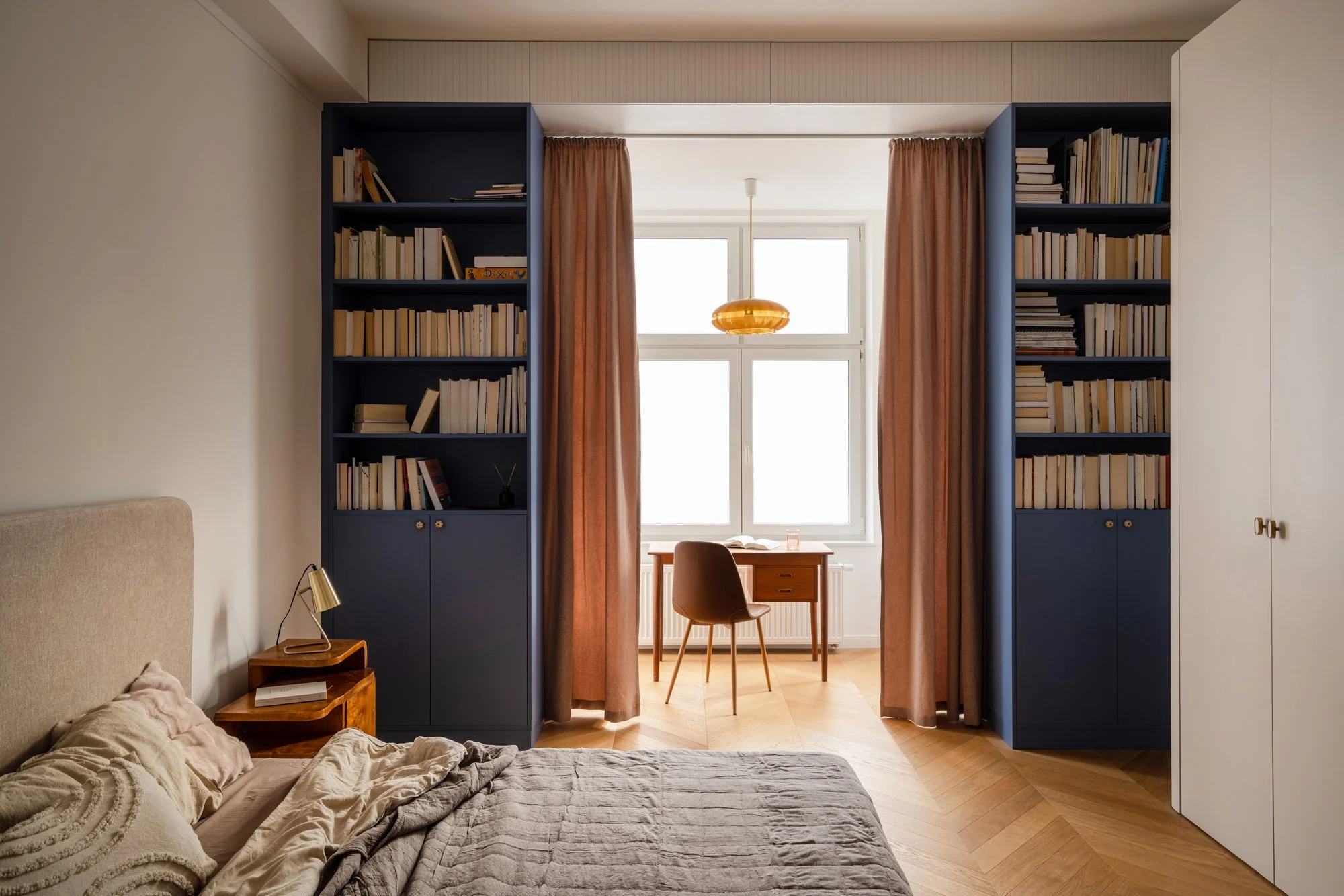 Obejmuje rozplanowanie układu funkcjonalno-użytkowego pomieszczenia (2 propozycje) – rzuty wraz z wymiarami.